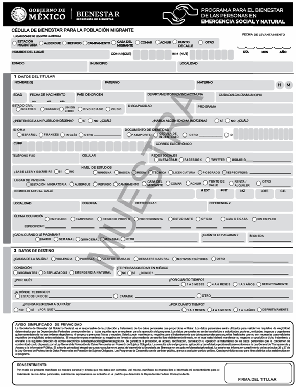 CEDULA DE BIENESTAR PARA LA POBLACIÓN MIGRANTE 2021