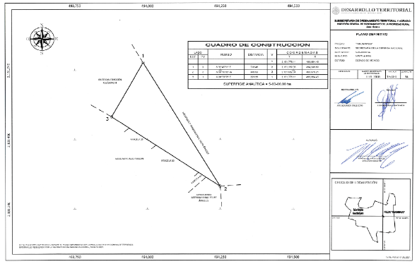 | Superficie excluida de la declaratoria de terreno nacional: | 19-70-64.30 hectáreas |