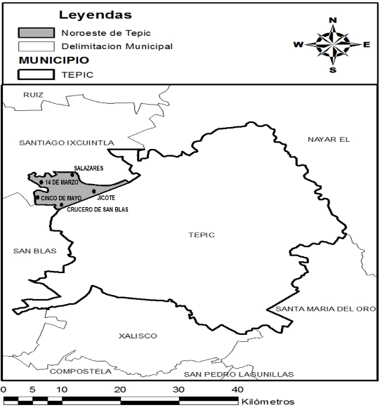 Mapa: Región Noroeste del municipio de Tepic, Nayarit.