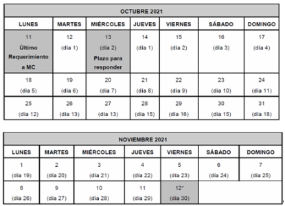 Este término se contabilizó a partir del catorce de octubre del presente año, para concluir, el doce de noviembre de dos mil veintiuno; considerando que la fecha límite en el que Movimiento Ciudadano debió remitir la totalidad de la documentación para el análisis y resolución correspondiente fue el trece de octubre del año en curso. Por lo que, el plazo se contabilizó de la siguiente forma: