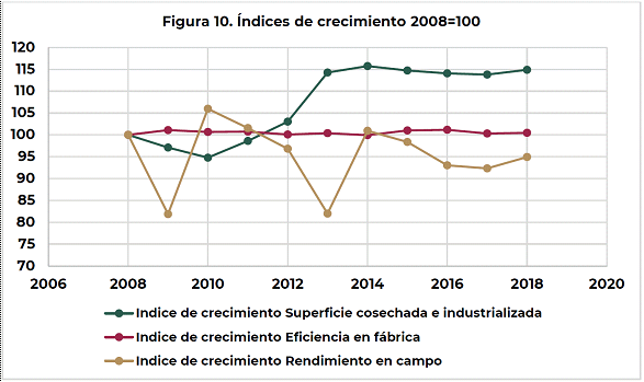 | Método de cálculo | Tasa de crecimiento del rendimiento en campo de la zafra N-Tasa de crecimiento del rendimiento en campo de la zafra N-1. | ||||||