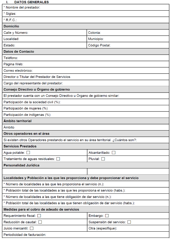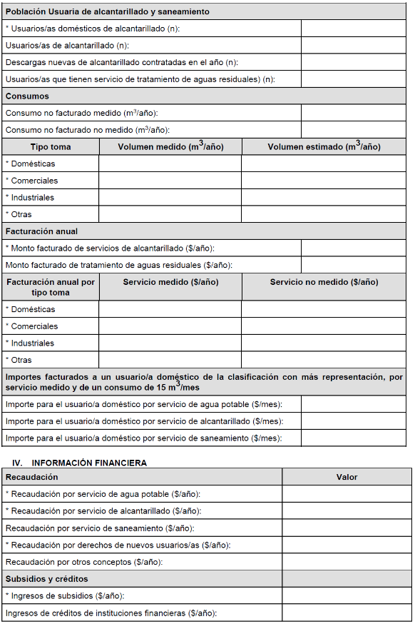 ANEXO III. CUESTIONARIO DE INFORMACIÓN BÁSICA DE PRESTADORES DE SERVICIOS DE AGUA POTABLE Y SANEAMIENTO.