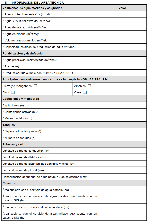 El presente cuestionario se llenará para localidades de 2,500 habitantes o más en el Estado. Los campos marcados con asterisco (*) son obligatorios de llenar