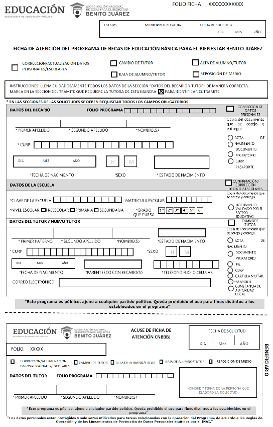 Anexo 5.- Ficha de Atención del Programa de Becas de Educación Básica para el Bienestar Benito Juárez