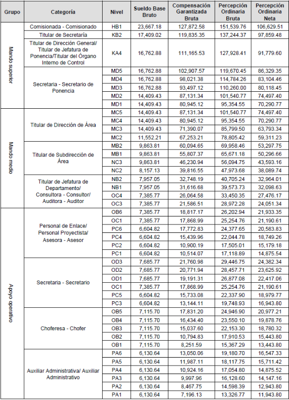 LÍMITES DE PERCEPCIÓN ORDINARIA TOTAL PARA LAS PERSONAS SERVIDORAS PÚBLICAS DEL