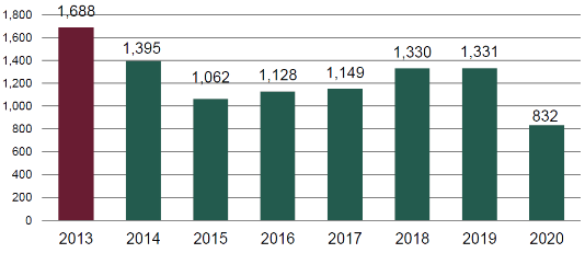 | 2013 | 2014 | 2015 | 2016 | 2017 | 2018 | 2019 | 2020 | |||||||||