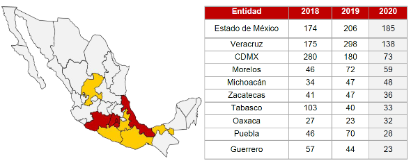| Valor | 0.70 | El cálculo de la línea base se realizó con los reportes de incidencia delictiva del fuero común y fuero federal con fecha de actualización del 20 de mayo de 2021. Las cifras pueden ser actualizadas para el periodo de referencia por las entidades federativas. | |||||||||||||