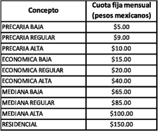 I. Cuota individual para el pago de la conexión de los servicios, de acuerdo al tipo de uso de la toma de agua con diámetro de media pulgada. [tabla]