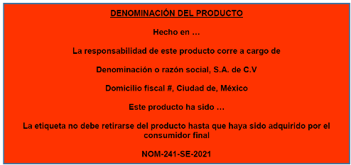 h) Se debe indicar la leyenda "NOM-241-SE-2021" o la que la sustituya, en tipo de letra Arial negrita.