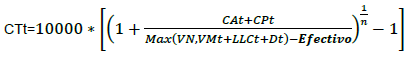 CTt= Comisión total del Instrumento Estructurado a la fecha "t", expresada en puntos base.