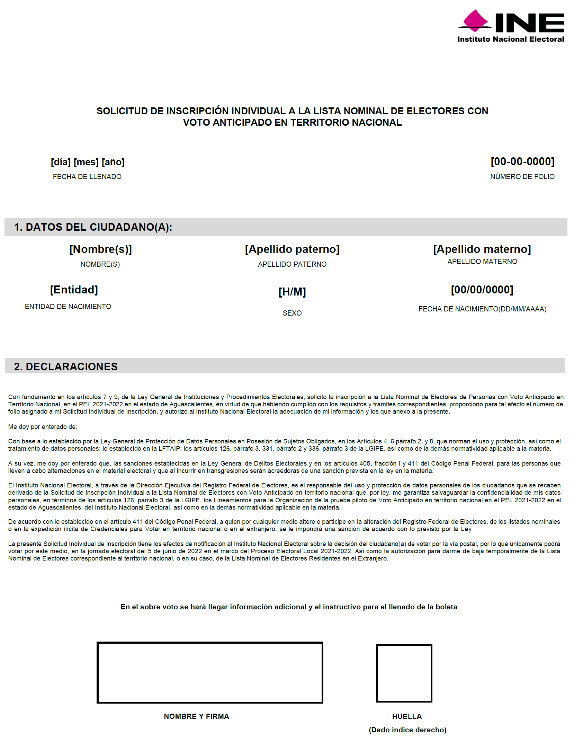 | Lineamientos | Lineamientos para la conformación de la Lista Nominal de Electores de la prueba piloto del voto anticipado para el Proceso Electoral Local 2021-2022 en el Estado de Aguascalientes. |
