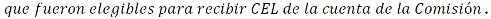 1.1 Fórmula para la asignación no onerosa de CEL de la cuenta de la Comisión.