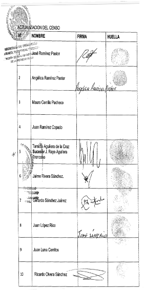 DÉCIMO.- Con motivo de la elección de nuevos integrantes del Comité Particular Ejecutivo del núcleo solicitante electos como consta en acta levanta el día veinte del enero de mil novecientos setenta, fueron expedidos los nombramientos correspondientes a los CC. J. Luz Lara Vargas, Rodrigo Palma Ramírez y J. Concepción de la Luz Tovar, como presidente, secretario y vocal, respectivamente, el tres de febrero de la citada anualidad.