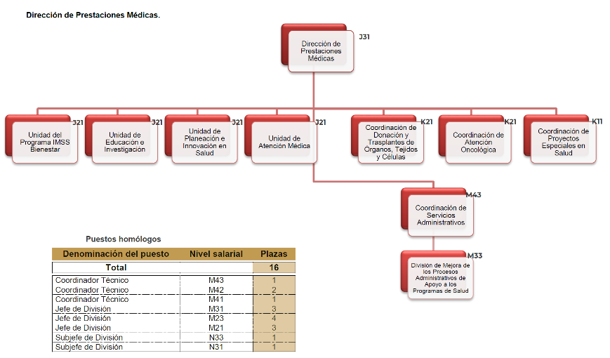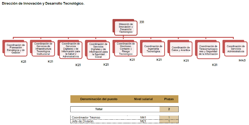 | IMSS Bienestar | Confianza Estatuto | 37310380 | COORDINADOR TECNICO NIVEL CENTRAL E2 | 2 |