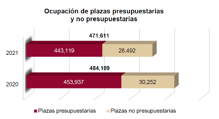 | Plazas no presupuestarias | 30,252 | 28,492 | -1,760 | -5.8 |