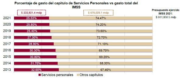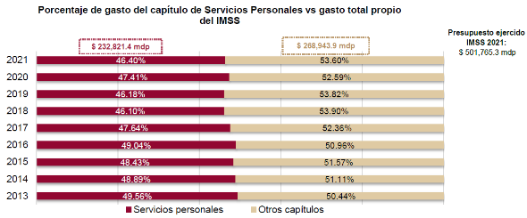 | 1/ No incluye plazas de nómina ordinaria del Programa IMSS-BIENESTAR. 2/ No Incluye las coberturas de ausentismo ni las contrataciones en plaza cero. La distribución geográfica de las plazas presupuestarias por tipo de servicio se encuentra en el Anexo 1 del Informe de los Servicios Personales en el IMSS 2021. | ||||||