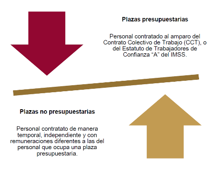 | 1/ No incluye plazas de nómina ordinaria del Programa IMSS-BIENESTAR. * Incluye personal adscrito a los Órganos de Operación Administrativa Desconcentrada que realiza funciones relativas a la Dirección Normativa. | ||||||