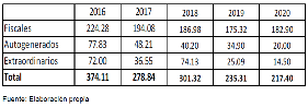 | Figura 5: Presupuesto del Centro de Investigación en Química Aplicada 2016-2020 (Millones de pesos a precios constantes 2020=100) | Otro aspecto de gran relevancia corresponde al presupuesto ejercido en el Centro, mismo que se puede observar en la Figura 5, que presenta una tendencia a la baja una vez que los presupuestos se manejan a precios constantes de 2020. Al hacer la comparación del presupuesto ejercido en 2020 respecto al de 2016, éste presenta una reducción de 41.89%. A pesar del recorte presupuestal, el CIQA ha establecido estrategias que le han permitido optimizar el uso de los recursos y apegados a la austeridad y los ejes de |
