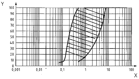 | En donde: X Granulometría en mm. Y Peso que pasa por el tamiz, en %. | |