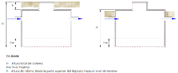 | Efecto de la temperatura | Enfriamiento mínimo de las aguas residuales debido a una circunferencia reducida | |
