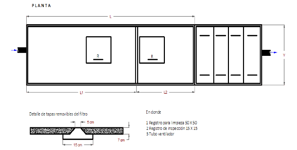 | Prestaciones | Valores normales de eliminación de SST y de DBO5 > 80% | Valores normales de eliminación del nitrógeno total y del fosforo total < 50%. Los sistemas pequeños son susceptibles a cargas de choque |