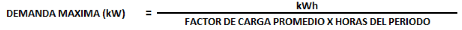 El valor del factor de carga promedio se sustituye en la fórmula de demanda máxima, así como los valores de consumo y horas del período de facturación.