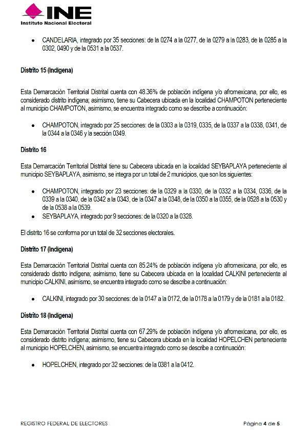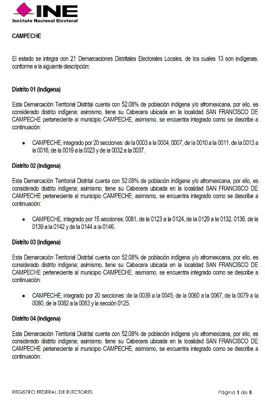 ACUERDO DEL CONSEJO GENERAL DEL INSTITUTO NACIONAL ELECTORAL POR EL QUE SE APRUEBA LA DEMARCACIÓN TERRITORIAL DE LOS DISTRITOS ELECTORALES UNINOMINALES LOCALES EN QUE SE DIVIDE EL ESTADO DE CAMPECHE Y SUS RESPECTIVAS CABECERAS DISTRITALES, A PROPUESTA DE LA JUNTA GENERAL EJECUTIVA