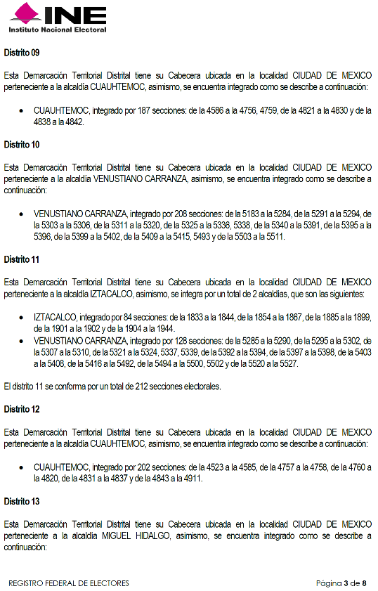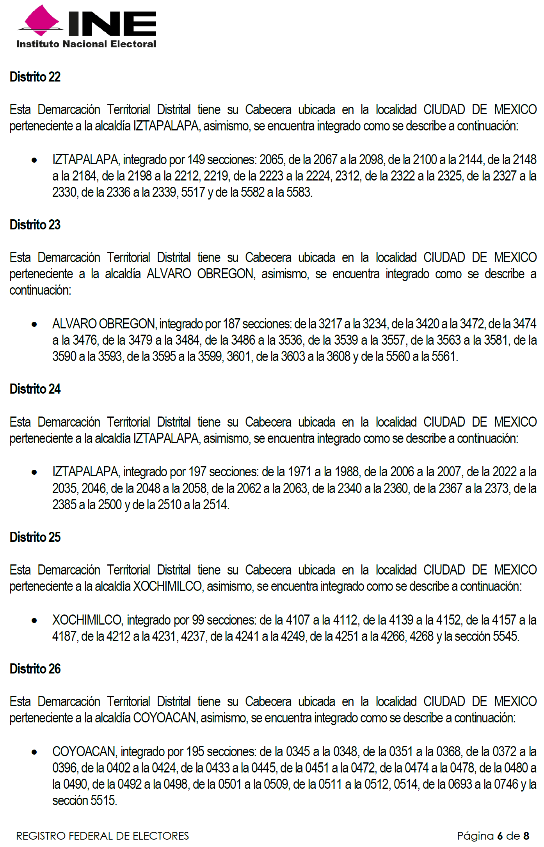Asimismo, resulta procedente que la nueva demarcación territorial de los distritos electorales uninominales locales en que se divide la Ciudad de México y sus respectivas cabeceras distritales se utilice a partir del Proceso Electoral Local coincidente con el Proceso Electoral Federal 2023-2024.
