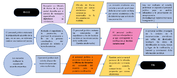 d) Se da trámite al oficio realizado, consistente en remitirlo a la Secretaría Administrativa y/o a la Dirección General de Recursos Humanos, quienes realizan el proceso respectivo de acuerdo con el movimiento solicitado.