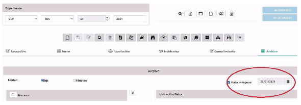 Ilustración 8. Apartado en SISGA en el que se puede visualizar la documentación recibida por medios electrónicos con el folio asignado