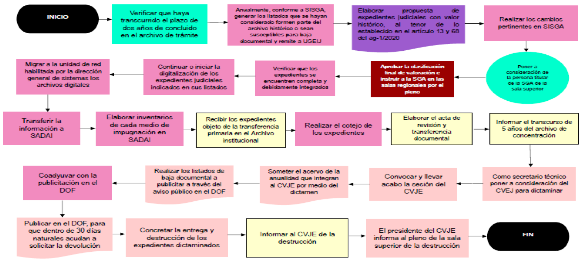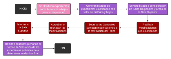 Diagrama 86. Procedimiento para la valoración, clasificación y depuración de expedientes judiciales y destino final