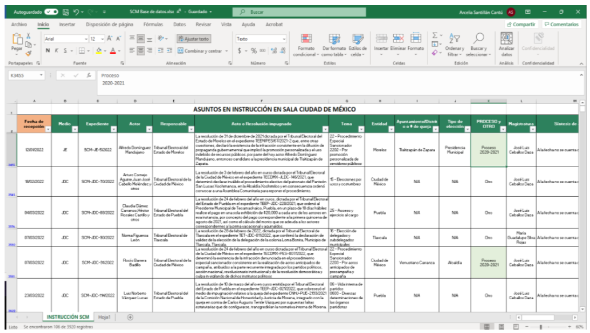 Ilustración 33. Modelo de la base de datos de sala regional sobre los asuntos en instrucción y resueltos