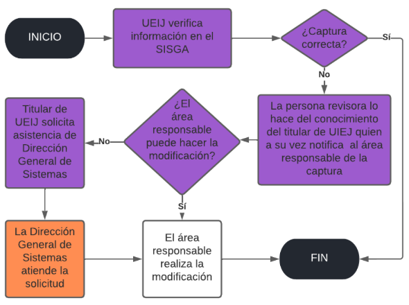 Diagrama 74. Procedimiento para la detección de inconsistencias de la información capturada en los sistemas por otras áreas de la Secretaría General de Acuerdos de Sala Superior