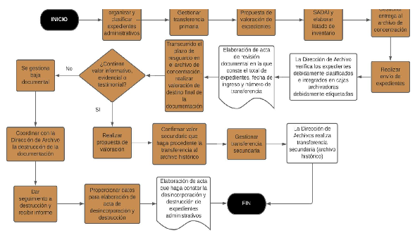 Diagrama 90. Conservar, valorar, clasificar y determinar el destino final de los expedientes en el ámbito administrativo