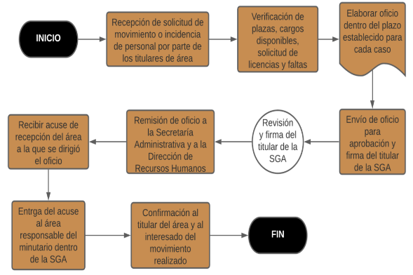 a) Se recibe la solicitud de movimiento o incidencia de personal por parte de las personas titulares de las diversas áreas que conforman la SGA.