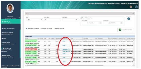 Ilustración 4. Apartado del SISGA en el que se visualizan los medios de impugnación y promociones electrónicas