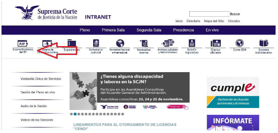 Ilustración 10. Apartado del portal de Intranet de la SCJN para acceder al "Sistema Electrónico del PJF"
