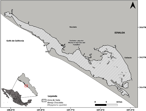 Figura. Zona de veda para el aprovechamiento de almeja chocolate (Megapitaria squalida) en el sistema