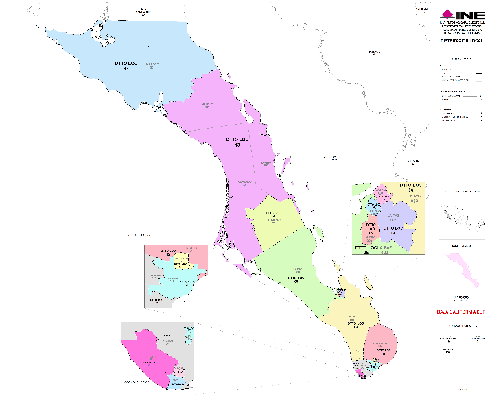 En virtud de lo expuesto, y de acuerdo con el PTDN21-23, se realizaron las actividades para la generación del proyecto de demarcación territorial de los distritos electorales uninominales locales en que se divide el Estado de Baja California Sur y sus respectivas cabeceras distritales, a propuesta de la JGE.
