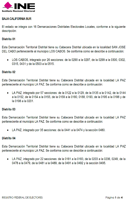 ACUERDO del Consejo General del Instituto Nacional Electoral por el que se aprueba la demarcación territorial de los distritos electorales uninominales locales en que se divide el Estado de Baja California Sur y sus respectivas cabeceras distritales, a propuesta de la Junta General Ejecutiva.