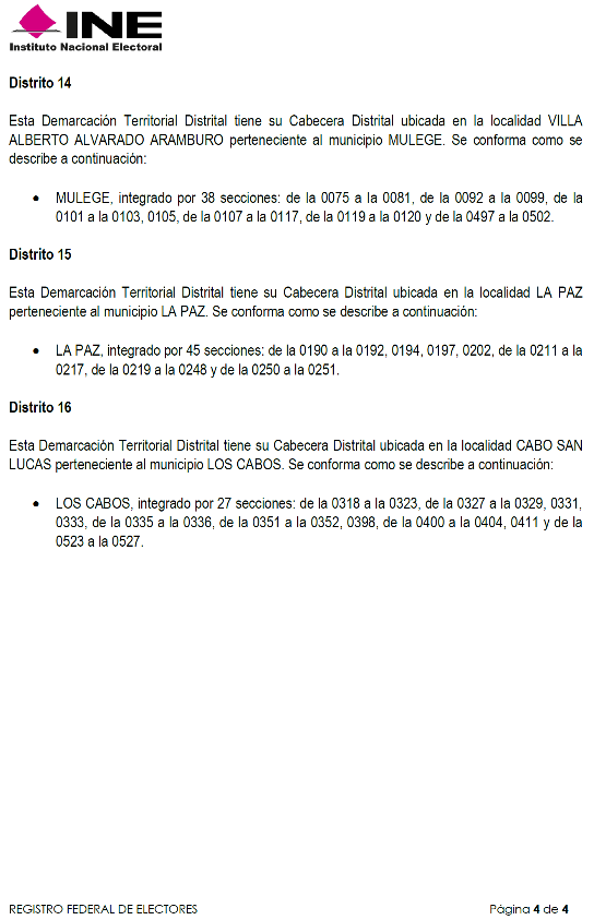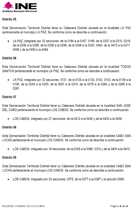 SEGUNDO. Se aprueba que la nueva demarcación territorial de los distritos electorales uninominales locales en que se divide el Estado de Baja California Sur y sus respectivas cabeceras distritales, a que se refiere el punto primero del presente acuerdo, será utilizada a partir del Proceso Electoral Local coincidente con el Proceso Electoral Federal 2023-2024.