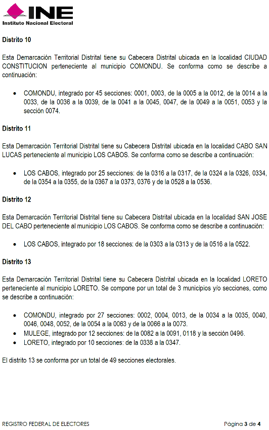 33. Publicación del tercer escenario de distritación con propuesta de cabeceras distritales. El 13 de junio de 2022, se publicó el tercer escenario de distritación junto con la propuesta de cabeceras distritales para el Estado de Baja California Sur.
