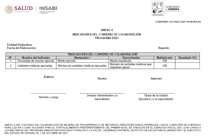 Anexo 4. INDICADORES DEL CONVENIO DE COLABORACIÓN PROGRAMA E023
