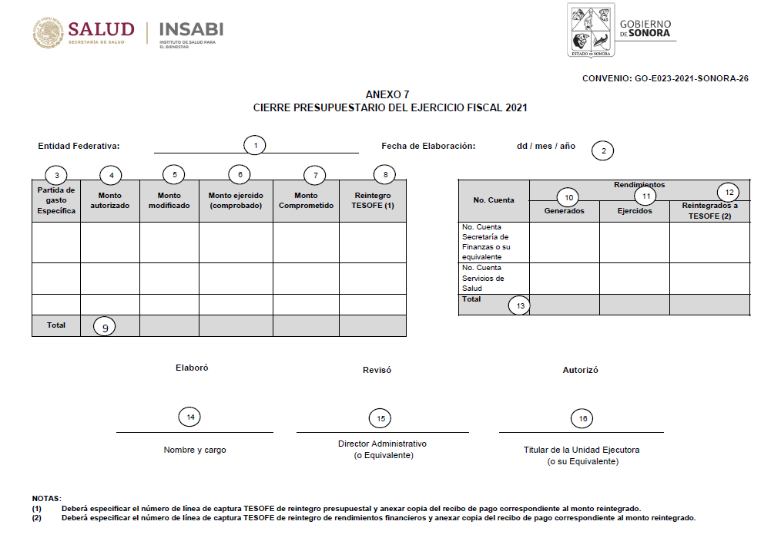 VII. Rendir al "INSABI", por conducto de la Unidad Ejecutora, los informes (i) del ejercicio del gasto de manera mensual, a más tardar los días quince (15) de noviembre y 15 de diciembre de 2021, y (ii) de cierre del ejercicio, dentro de los (30) días siguientes a que ocurra el mismo, conforme a los Anexos 3 y 7 de este Convenio de Colaboración, respectivamente.