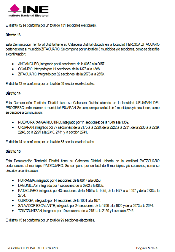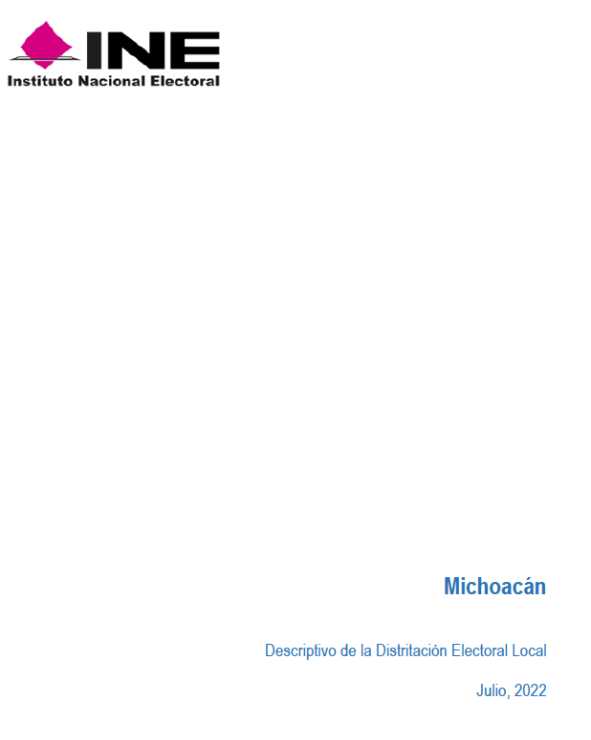 33. Publicación del tercer escenario de distritación con propuesta de cabeceras distritales. El 13 de junio de 2022, se publicó el tercer escenario de distritación junto con la propuesta de cabeceras distritales para la entidad federativa de Michoacán.