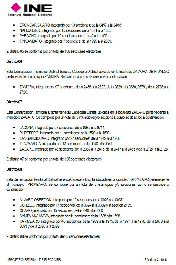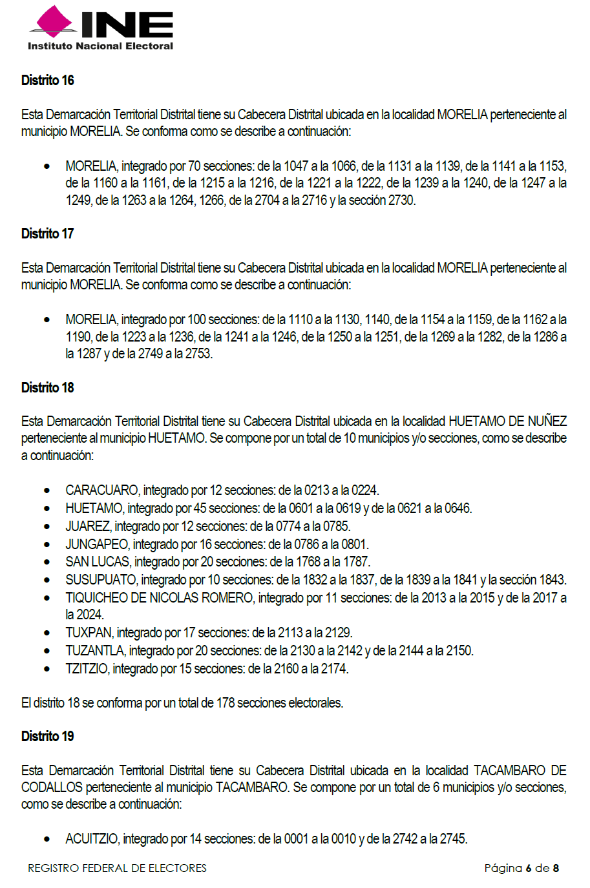 ACUERDO del Consejo General del Instituto Nacional Electoral por el que se aprueba la demarcación territorial de los distritos electorales uninominales locales en que se divide el Estado de Michoacán y sus respectivas cabeceras distritales, a propuesta de la Junta General Ejecutiva.