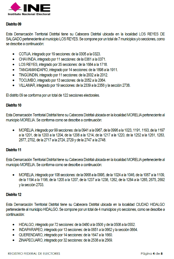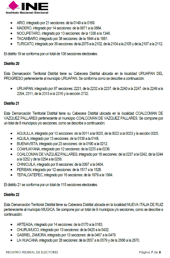 ACUERDO DEL CONSEJO GENERAL DEL INSTITUTO NACIONAL ELECTORAL POR EL QUE SE APRUEBA LA DEMARCACIÓN TERRITORIAL DE LOS DISTRITOS ELECTORALES UNINOMINALES LOCALES EN QUE SE DIVIDE EL ESTADO DE MICHOACÁN Y SUS RESPECTIVAS CABECERAS DISTRITALES, A PROPUESTA DE LA JUNTA GENERAL EJECUTIVA