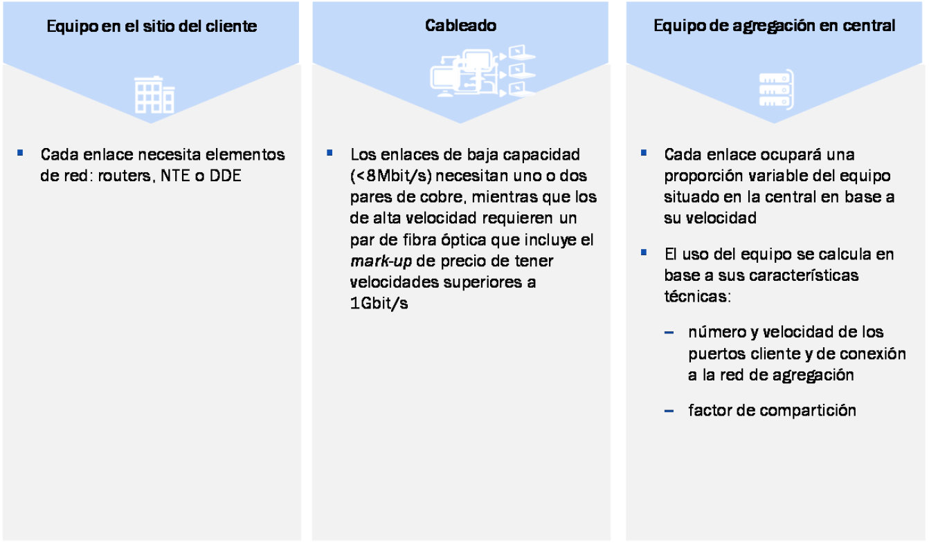 17 Por ejemplo, los costos actuales top-down que representan operaciones de voz y datos necesitan ser divididos en costos independientes de voz relevantes y costos adicionales de datos. Las redes únicamente de voz no existen comúnmente en la realidad, lo que implica que la red modelada no puede ser comparada con ningún operador real.