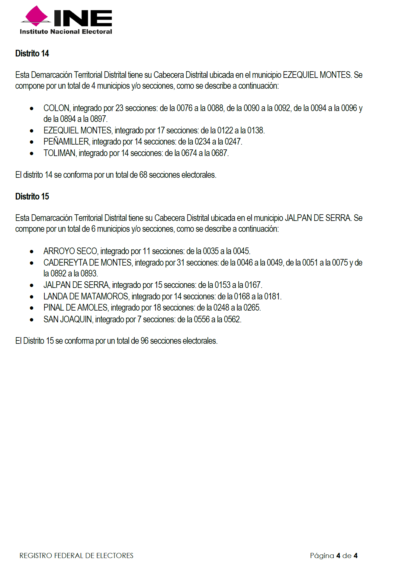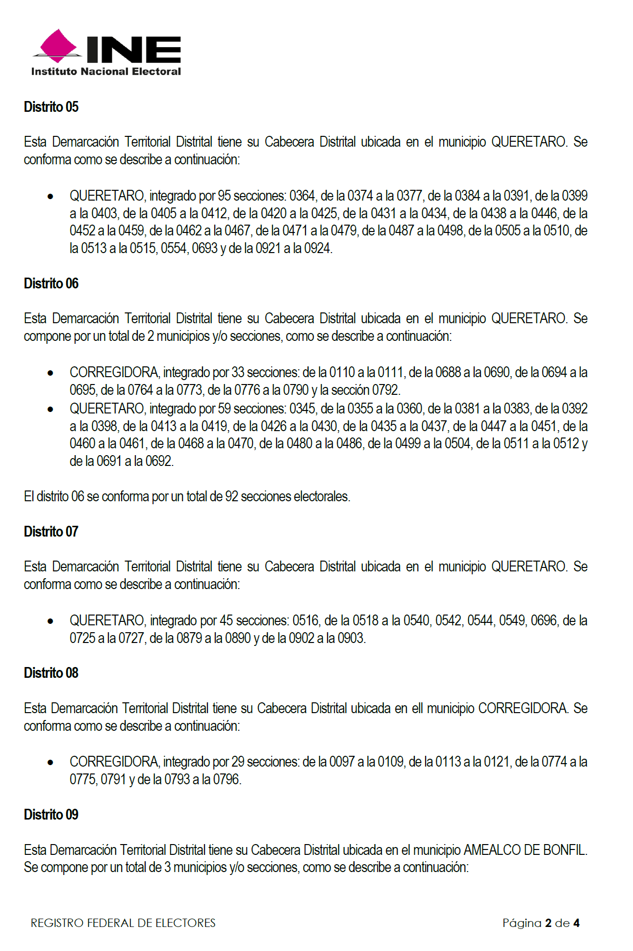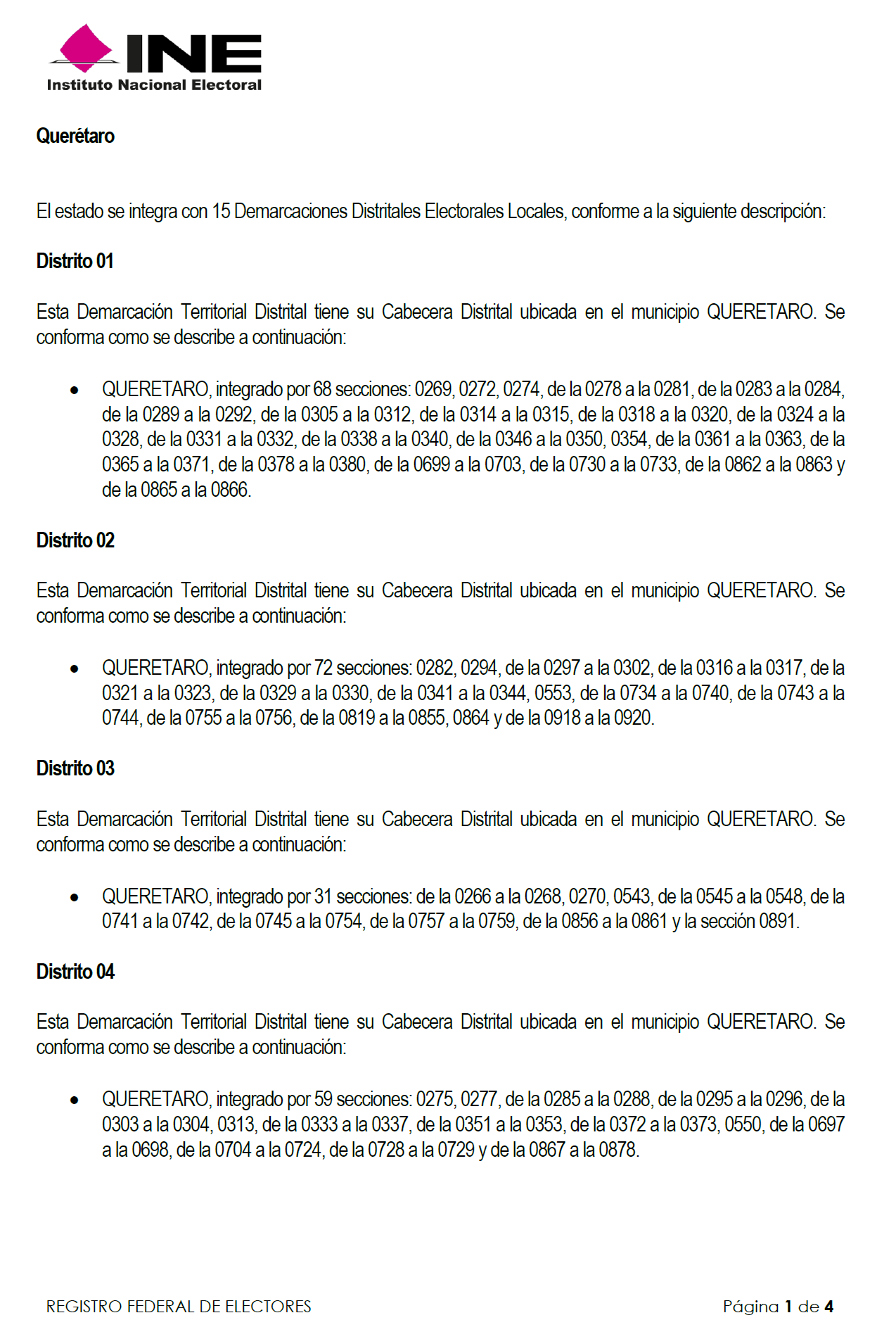 | 22 | Querétaro | 014 | Querétaro | 0404 | 4 | 0921-0924 |
