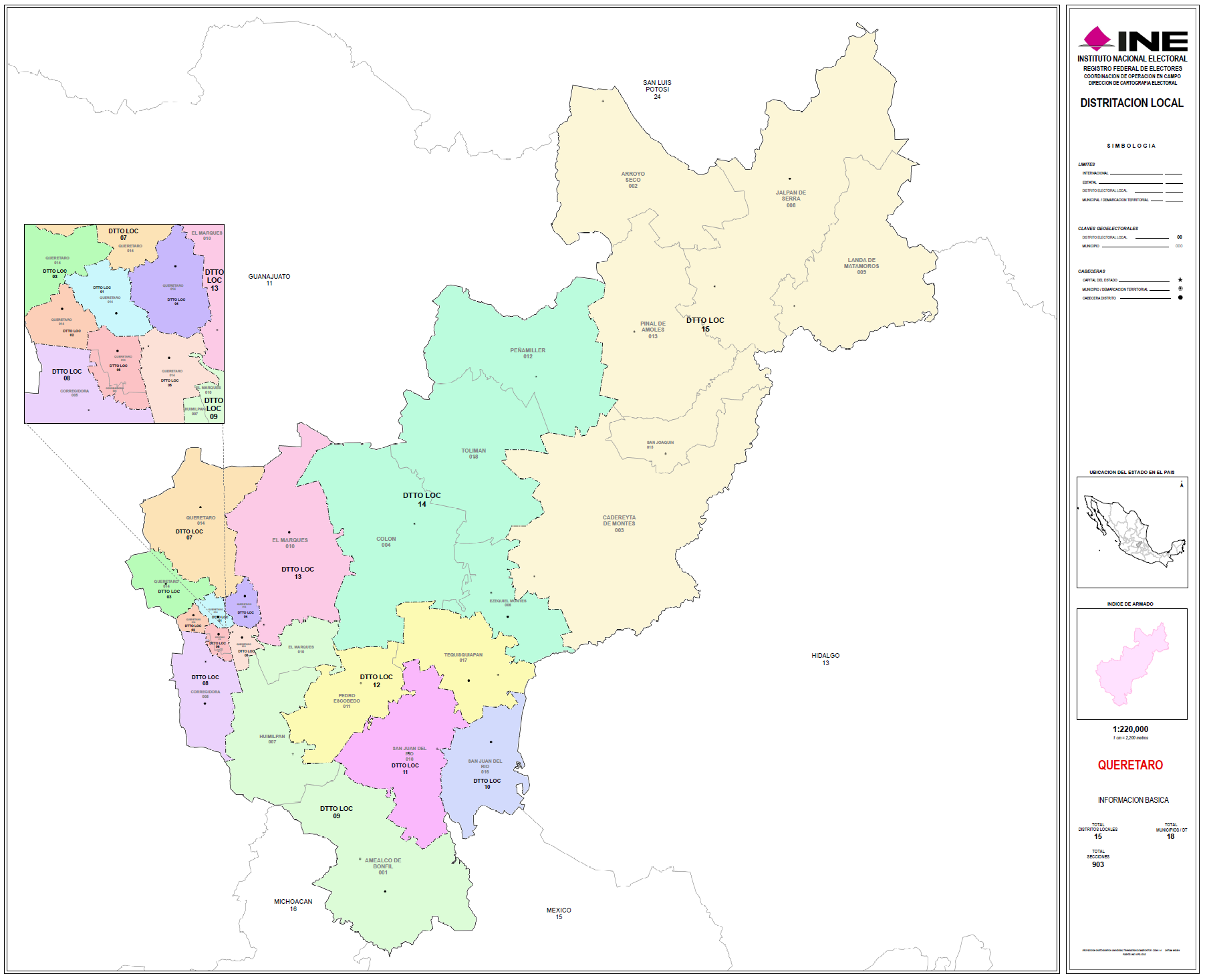 ACUERDO DEL CONSEJO GENERAL DEL INSTITUTO NACIONAL ELECTORAL POR EL QUE SE APRUEBA LA DEMARCACIÓN TERRITORIAL DE LOS DISTRITOS ELECTORALES UNINOMINALES LOCALES EN QUE SE DIVIDE EL ESTADO DE QUERÉTARO Y SUS RESPECTIVAS CABECERAS DISTRITALES, A PROPUESTA DE LA JUNTA GENERAL EJECUTIVA